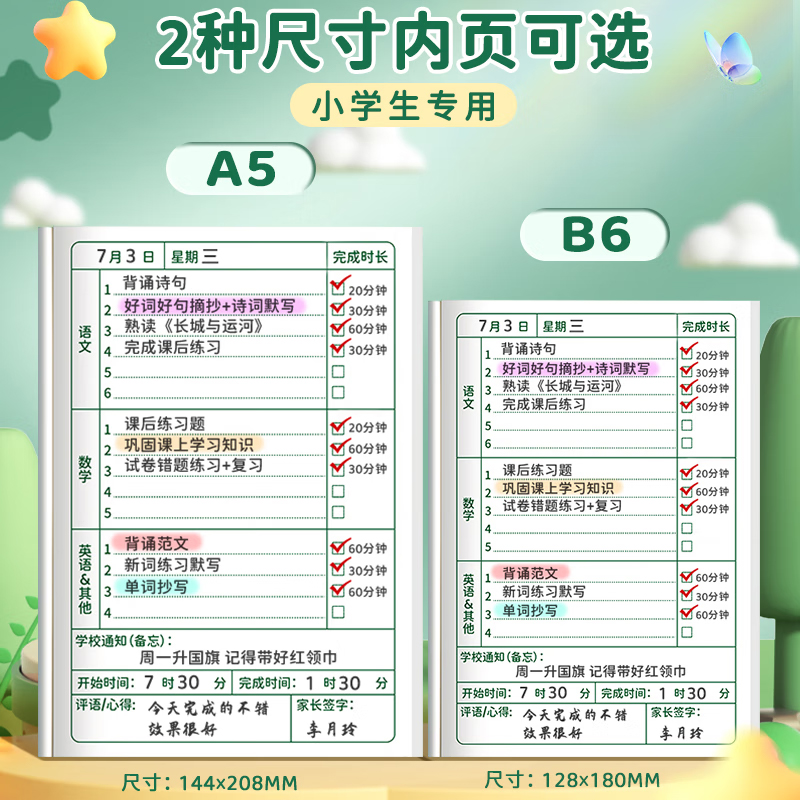 作业登记本小学生专用一二三年级家庭作业记录本课堂抄作业登记本可爱a5小本子初中生错题笔记本抄写家校联系
