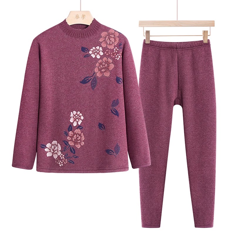 奶奶冬装保暖内衣套装女中老年人妈妈秋衣秋裤老太太加绒加厚秋冬