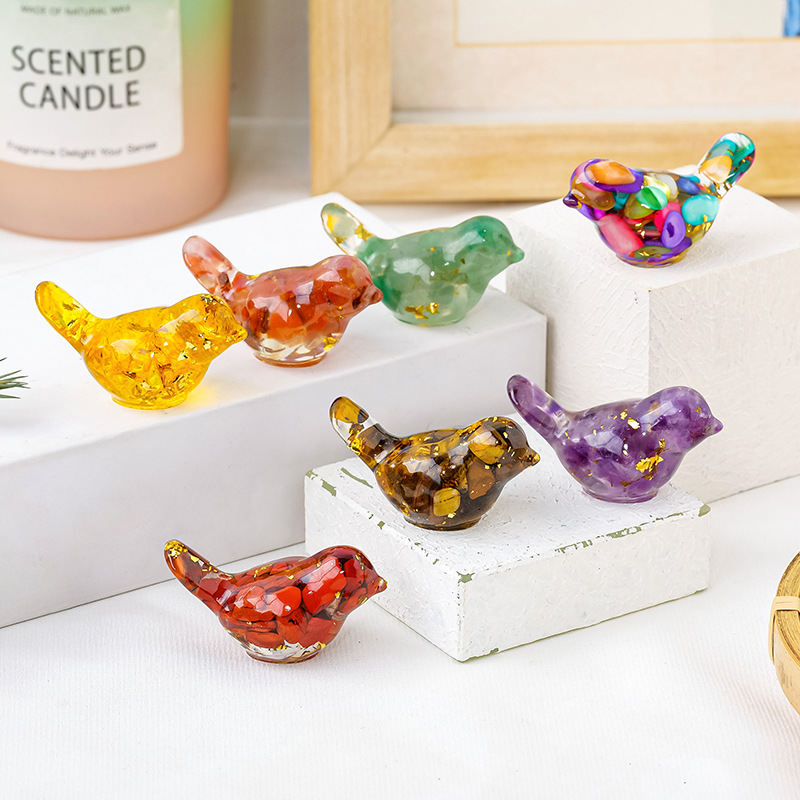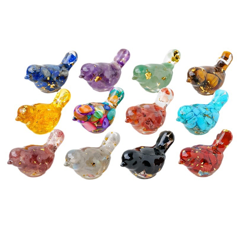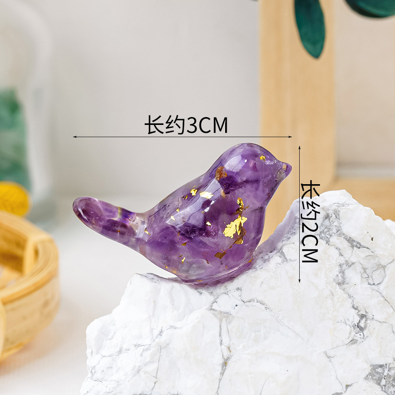 天然水晶碎石滴胶可爱小鸟树脂微景观盆景车载创意工艺品礼品摆件