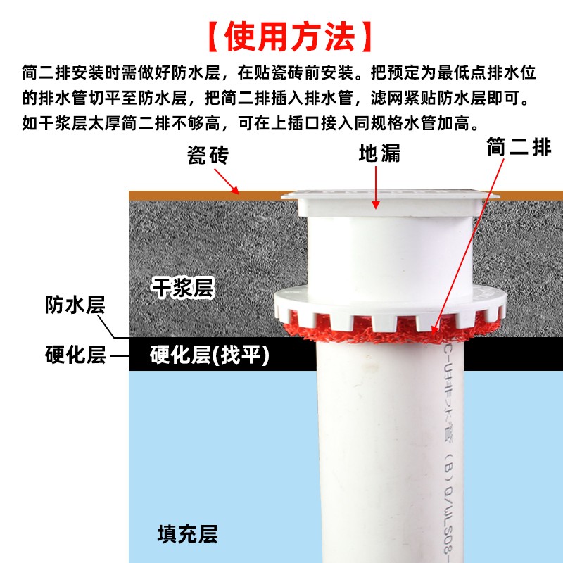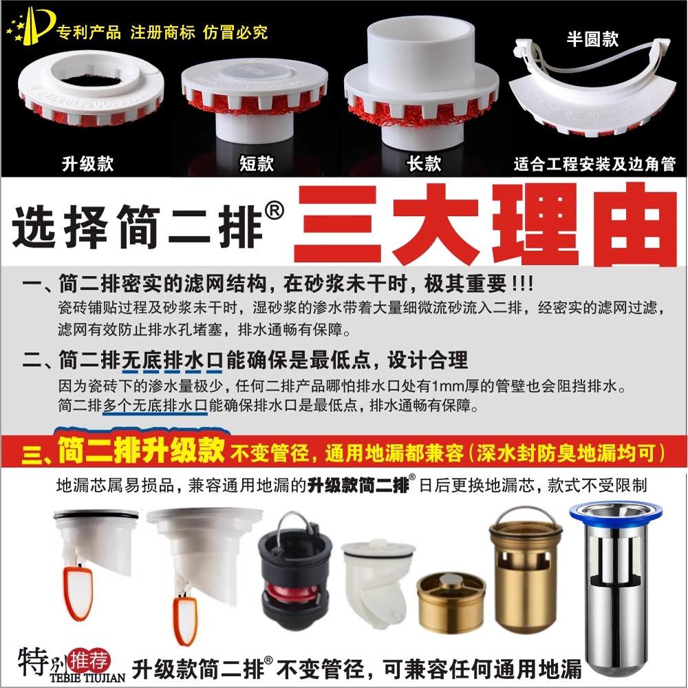 二次排水暗地漏简二排卫生间75预埋件50下沉式口短芯重力防臭地漏
