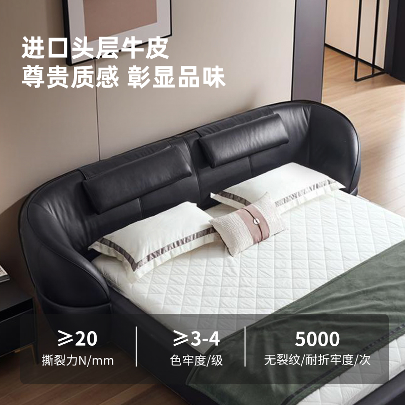 慕思真皮床大床屏大规格现代简约床主卧软包床卧室双人床