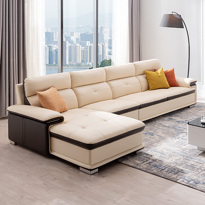 出乎生活松果真皮沙发中古风客厅简约头层牛皮超大坐深直排沙发