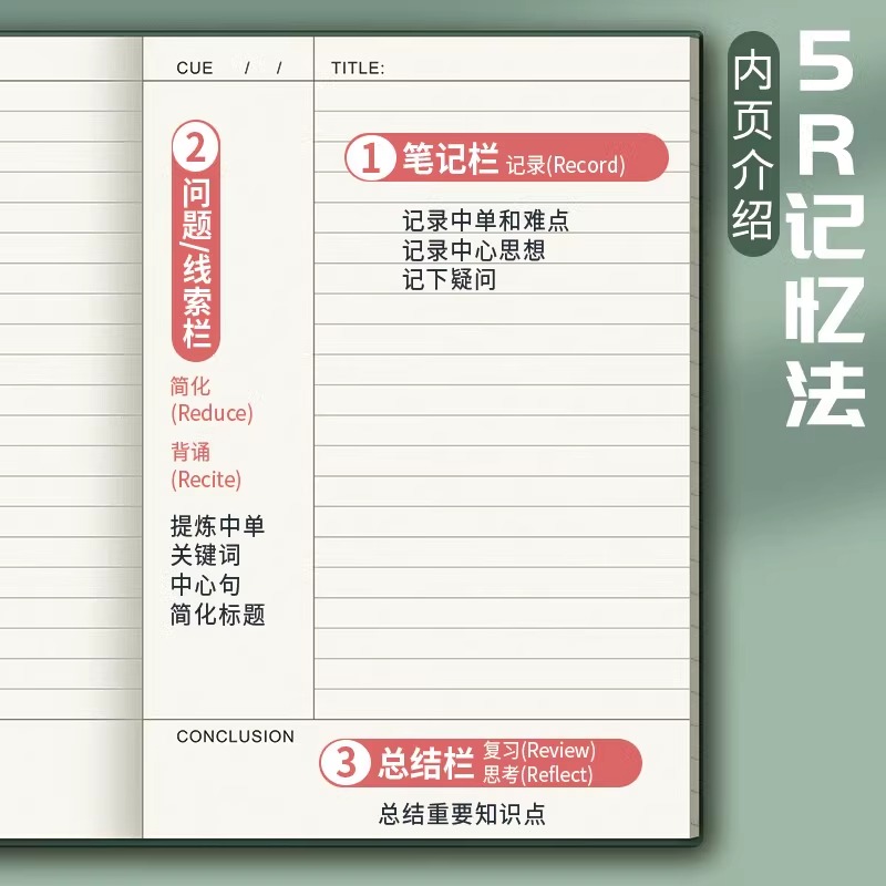 B5康奈尔笔记本本子加厚软皮面本5R记忆法初高中生大学生考研学习日记录记事本思维导图复习本课堂笔记本子