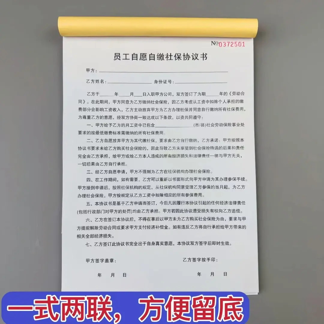 【下单立减50】员工自缴社保协议书交社会保险合同单承诺协议PX