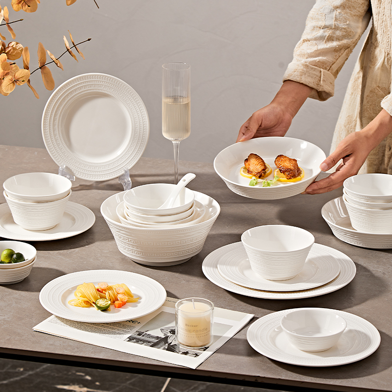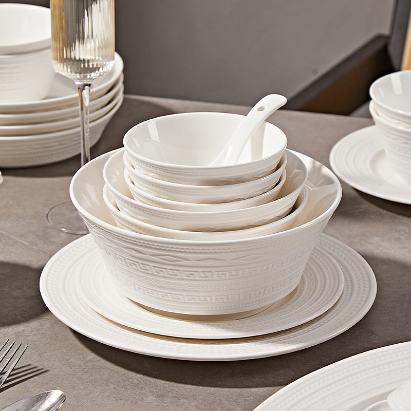 浮雕碗家用2025新款法式纯白陶瓷米饭碗餐具组合面碗平盘西餐盘碗