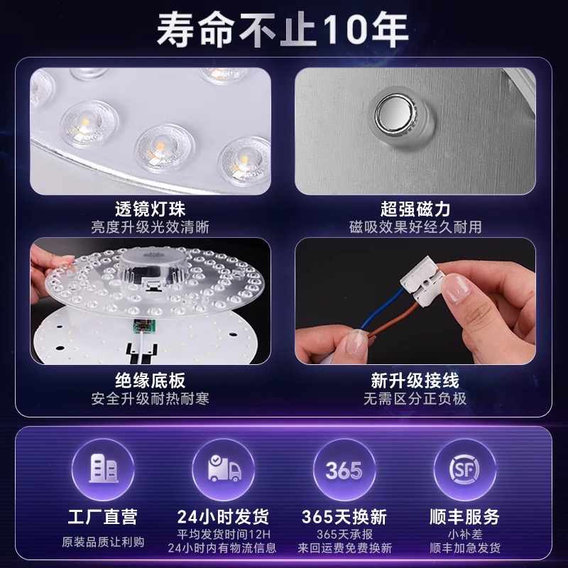 led吸顶灯替换灯芯卧室客厅圆形灯盘磁吸灯板改造光源家用节能灯