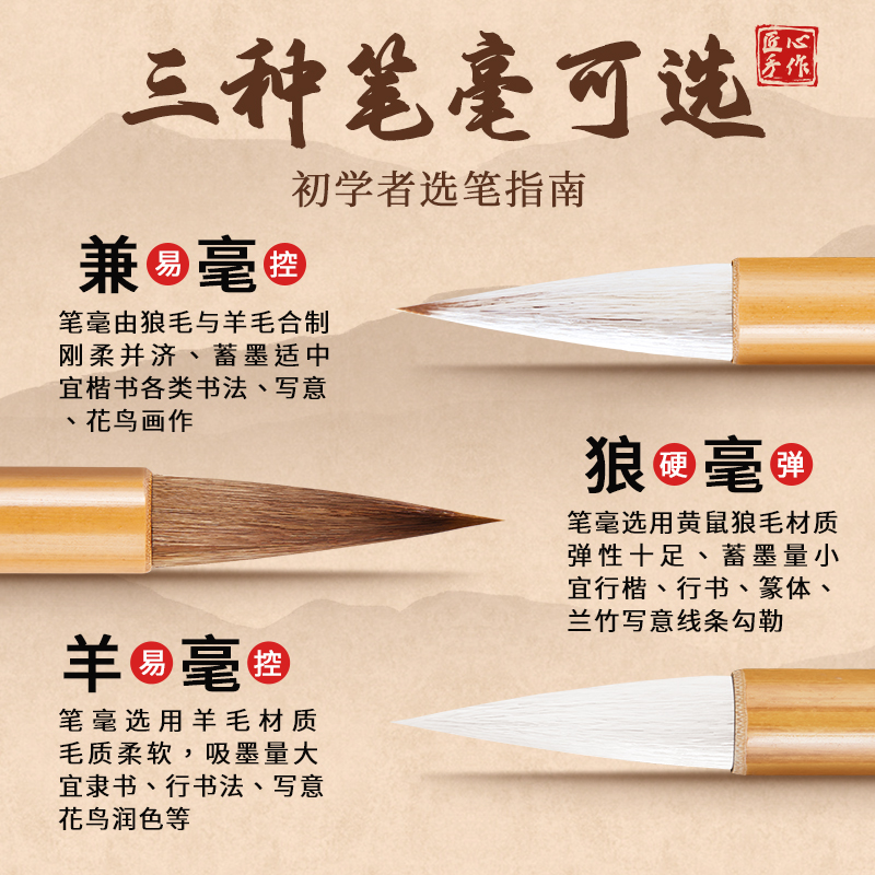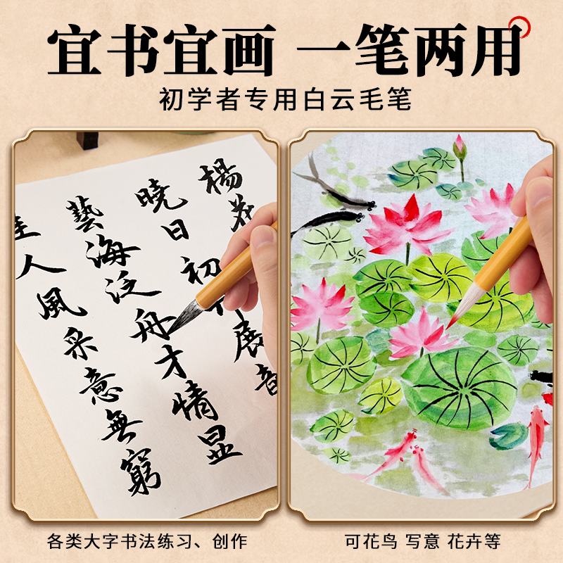 白云毛笔狼毫兼毫羊毫书法软笔楷书隶书临摹专用小学生毛笔字初学者入门套装国画中楷小楷大楷白云笔