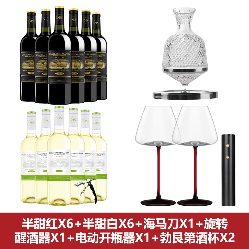 玛莎诺娅骑士古堡半甜型红酒6瓶白葡萄酒6瓶12度750ml微醺爽口