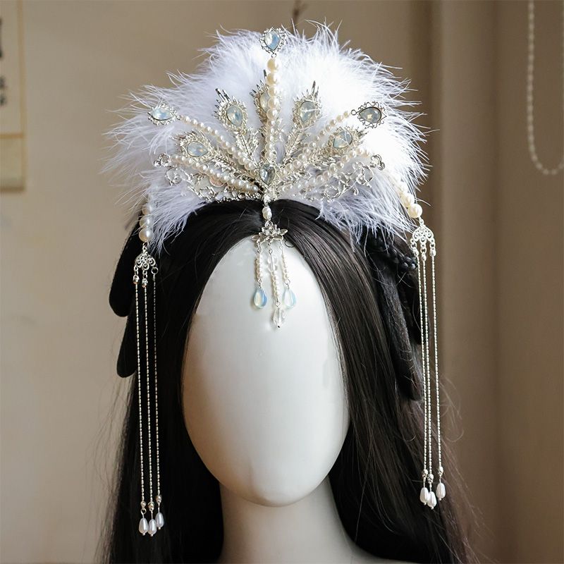 绝美羽毛发冠女儿国同款古风凤凰仙气飘逸清冷感发饰流苏皇冠发簪