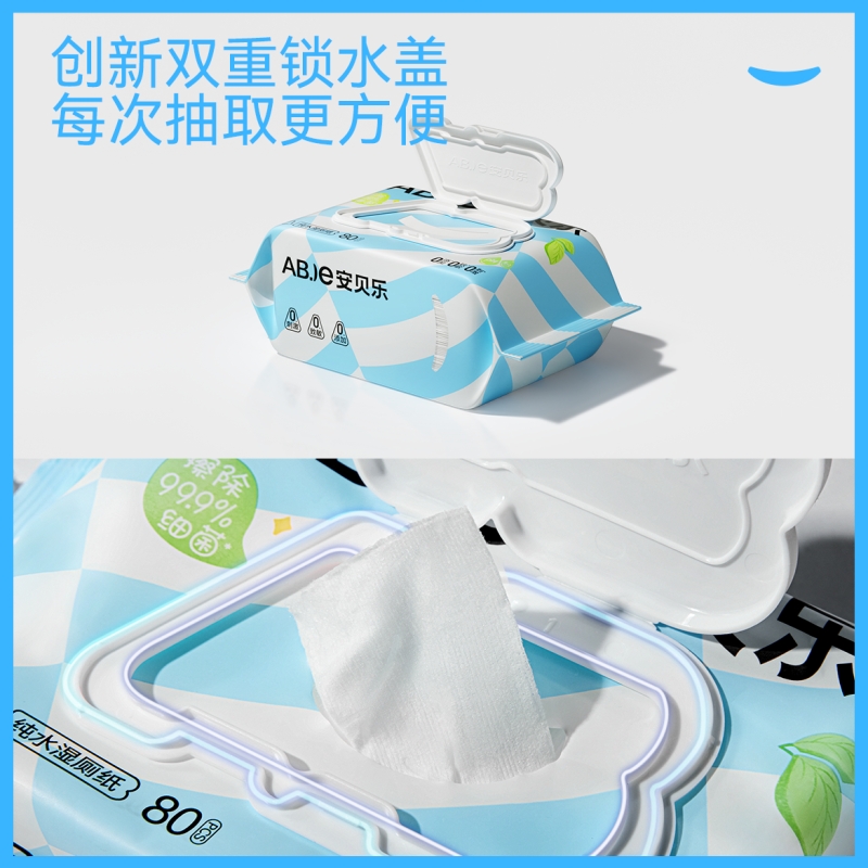安贝乐湿厕纸纯水家庭实惠装80抽女性专用湿手纸湿厕巾湿巾洁厕纸