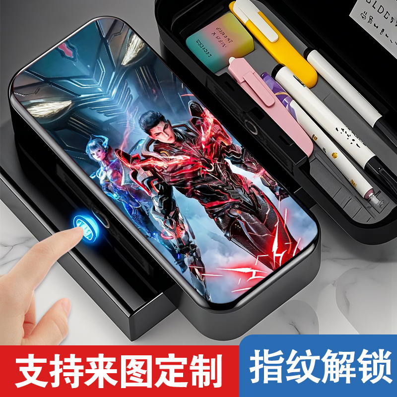 吞噬星空指纹解锁文具盒小学生多功能大容量黑科技铅笔盒女动漫