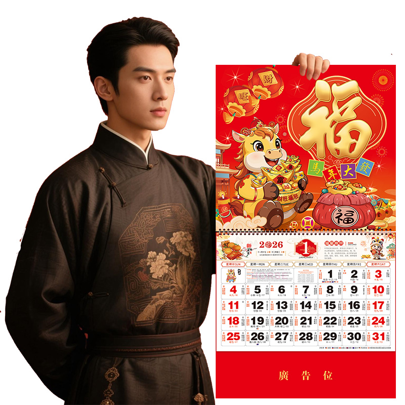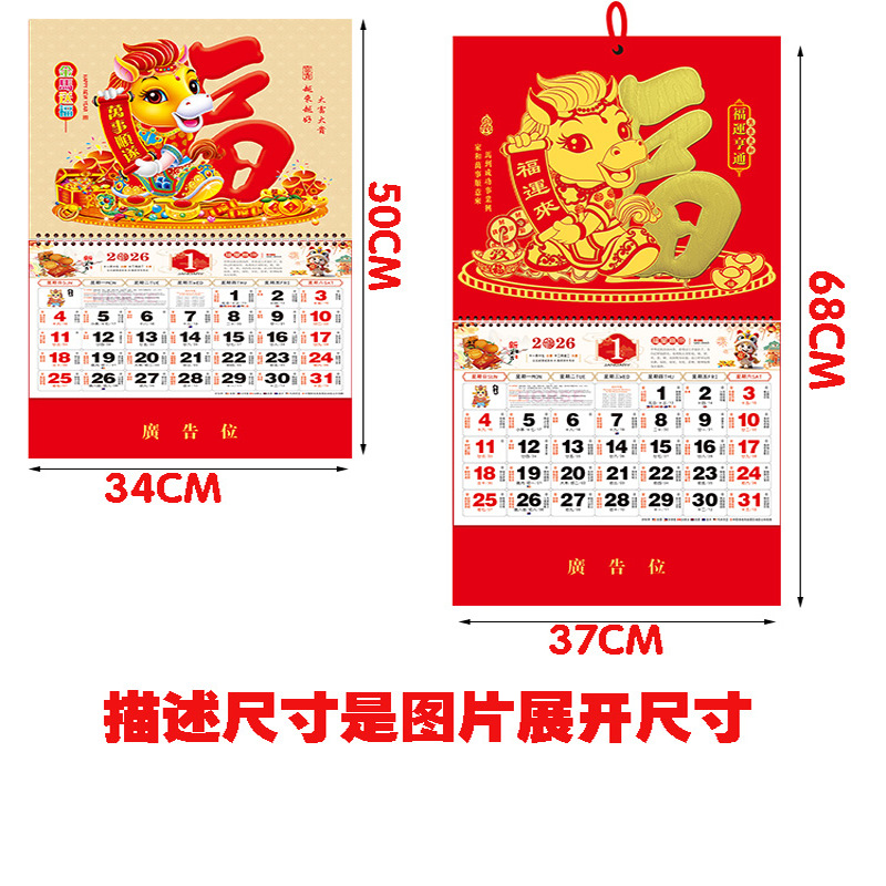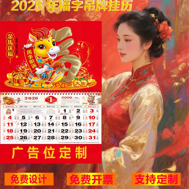 2026马年挂历定制福字吊牌月历年历日历手撕大号中国风印刷广告