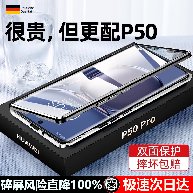 (双面玻璃)适用华为P50pro手机壳p50手机套p50e鼎桥磁吸全包新款p5opro保护壳高级感平男女怕限量版外壳
