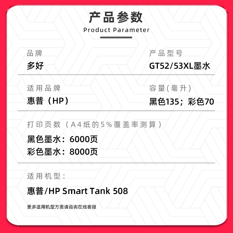 【Smart Tank 508专用墨水】多好原装效果适用HP508墨水惠普打印机油墨黑色