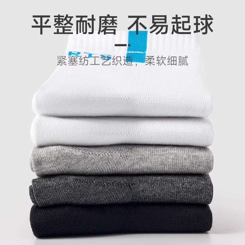 袜子男士夏季纯棉防臭吸汗透气运动短袜秋季抗起球白色中筒袜短筒