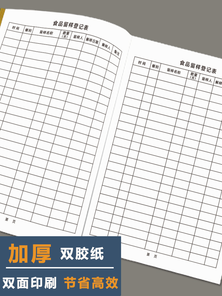 食品留样记录本餐饮食品留样记录本登记簿餐饮单位食品进货台账考勤与晨检记录本饭店酒店食品留样登记表