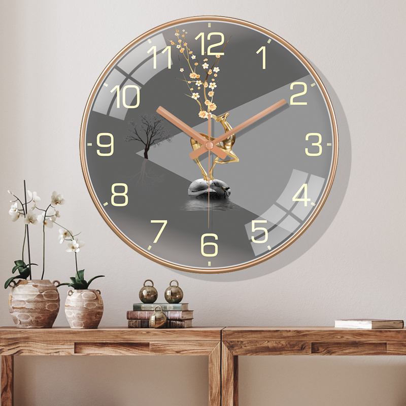 静音石英钟挂钟福字年年有余装饰客厅简约中式挂墙时尚家用时钟表