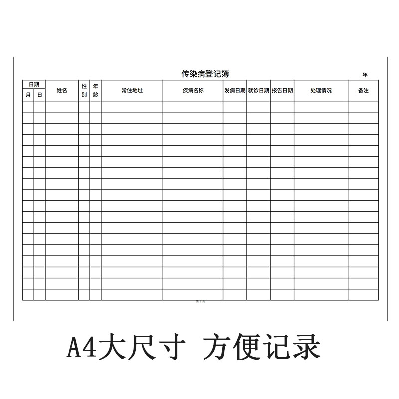 传染病登记簿传染病登记表疫情防控社区门诊传染病记录本医疗机构