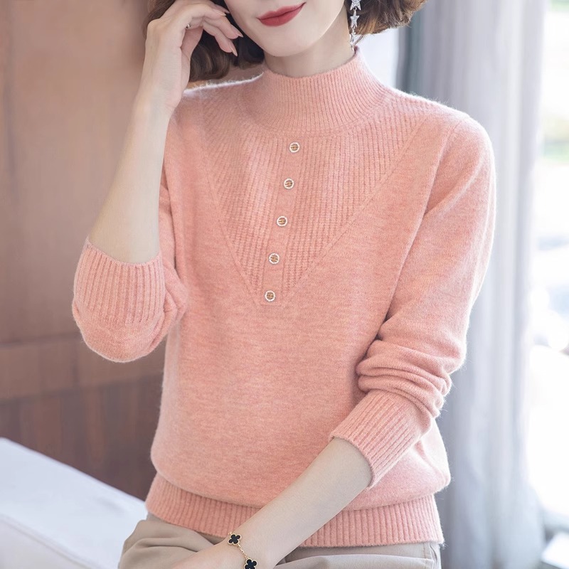 中年妈妈春装新款毛衣女士内搭中老年人秋冬上衣洋气半高领打底衫