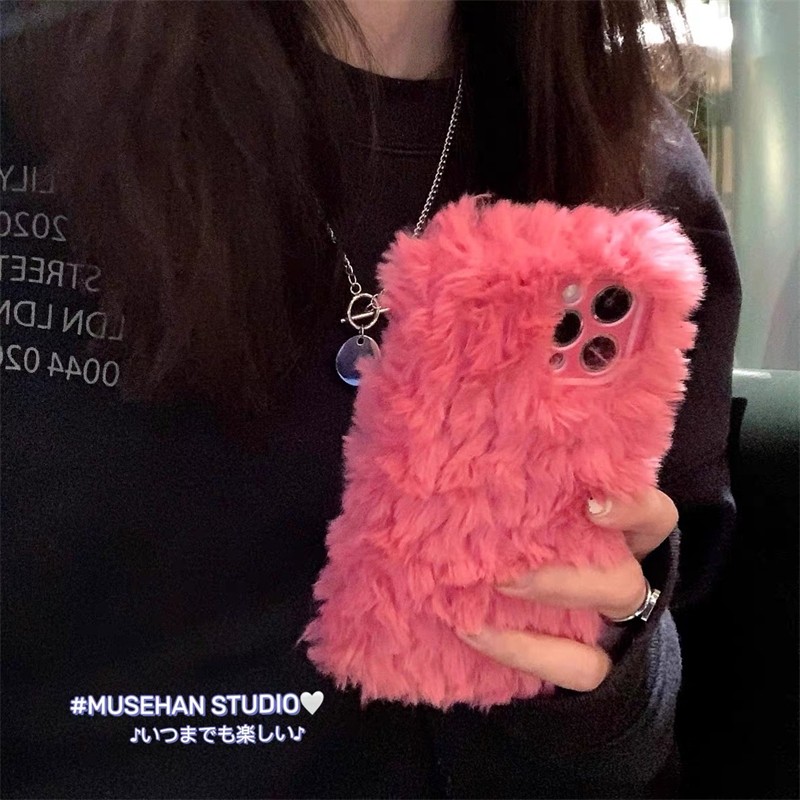 红色新年冬天毛茸茸适用iPhone14promax苹果13手机壳12秋冬季毛绒