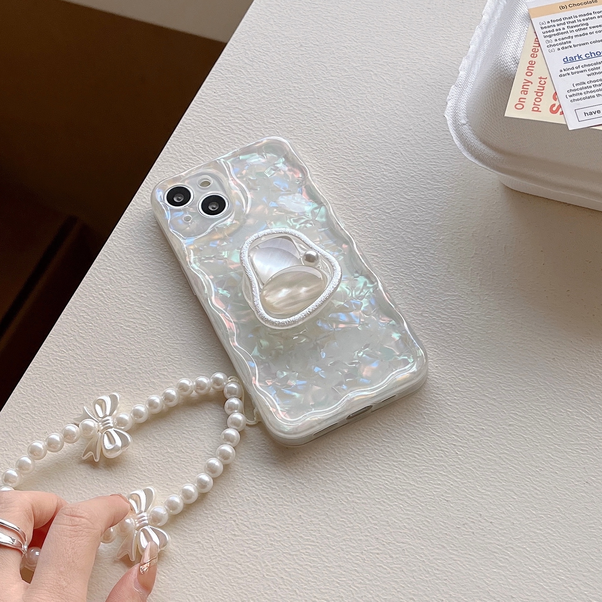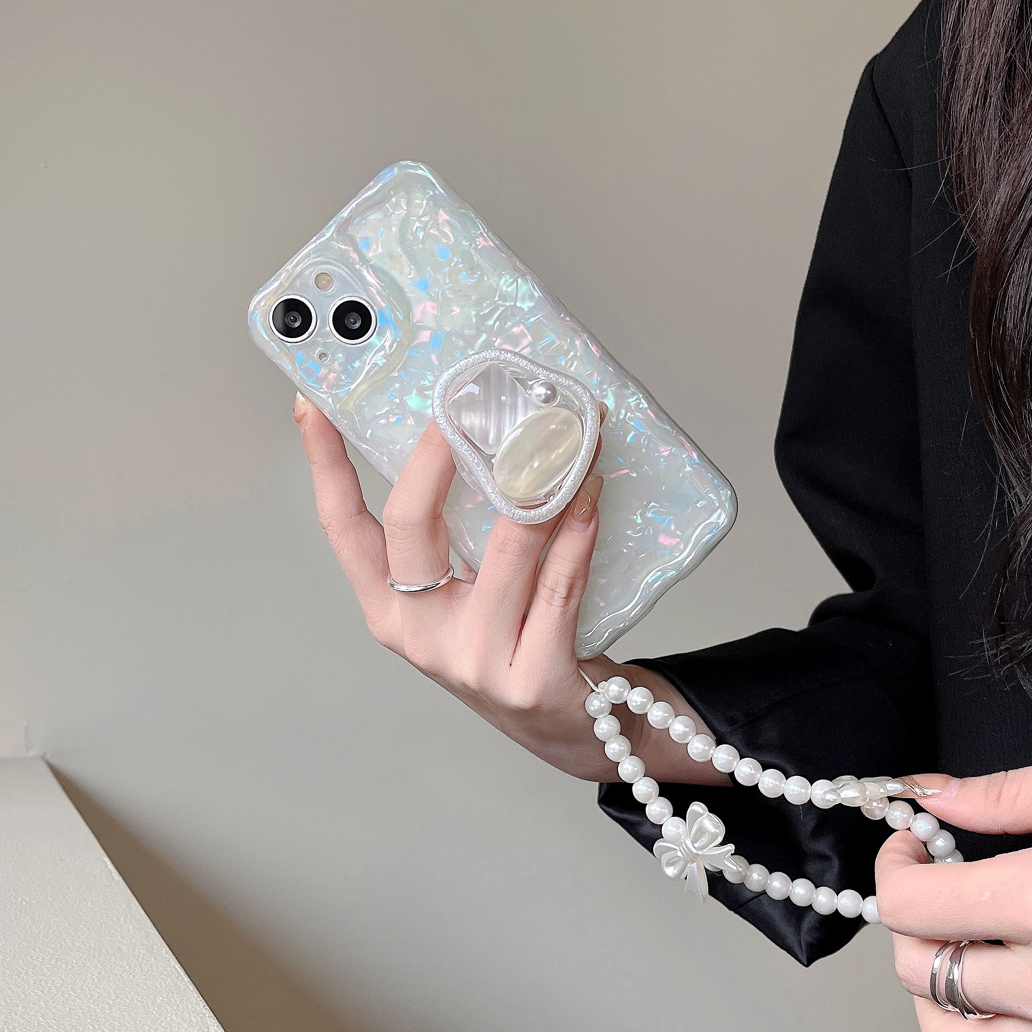 淳于亦时尚珍珠手链贝壳纹适用iPhone14Pro手机壳Max个性ins风女款支架15苹果13ProMax防摔软壳i12波浪蝴蝶结