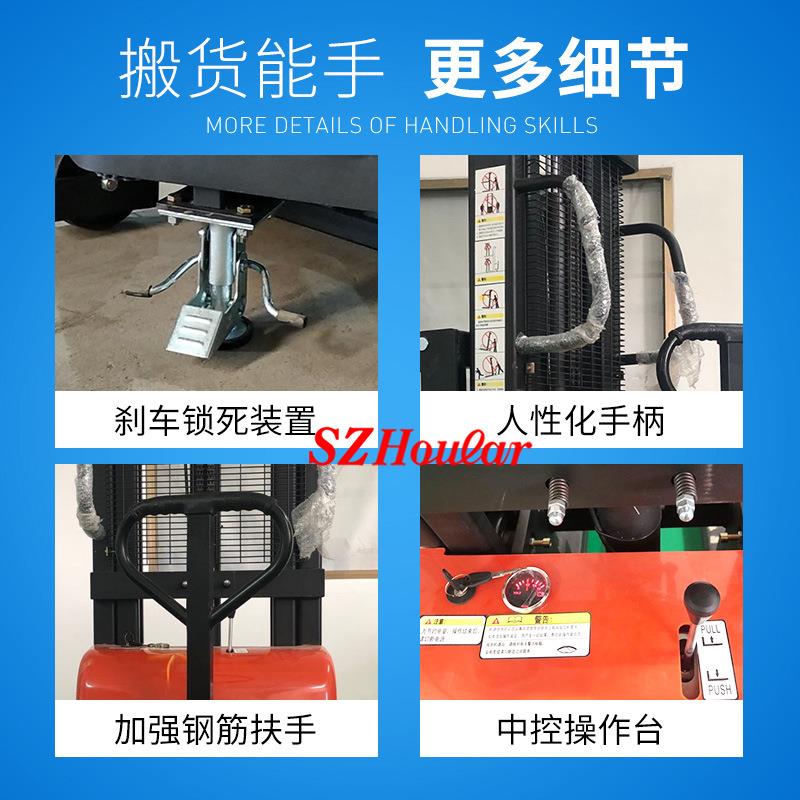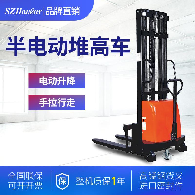 1吨/2吨半电动堆高车升高叉车全搬运举升堆高机聚氨酯轮铲车