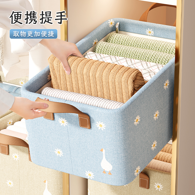 衣服收纳箱家用衣柜分层整理盒放衣物裤子布艺棉麻折叠储物筐神器