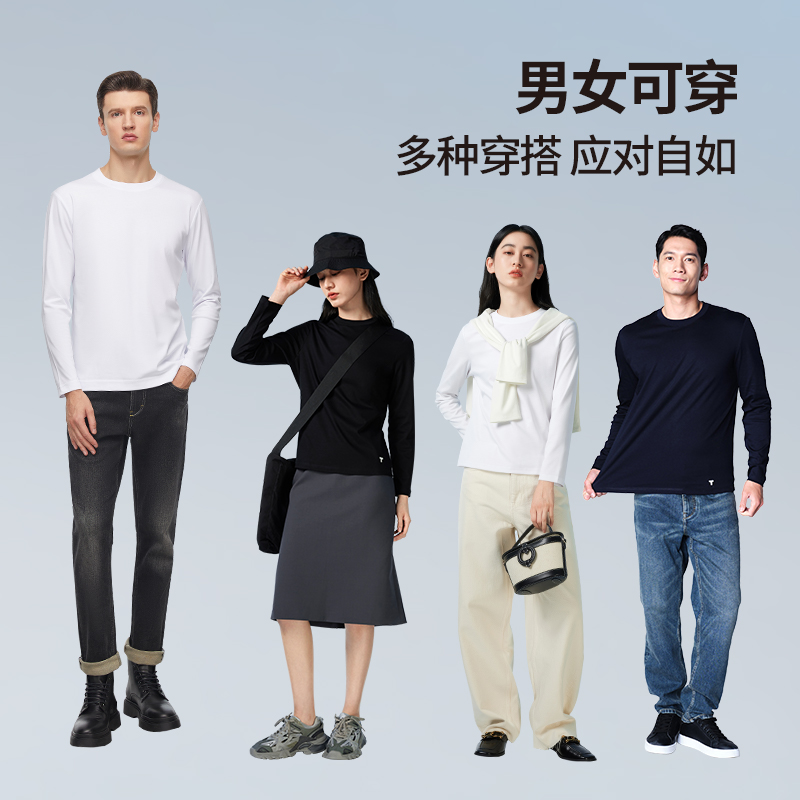 班尼路重磅纯棉长袖t恤男款秋季打底衫半袖青少年大码短袖体恤夏A