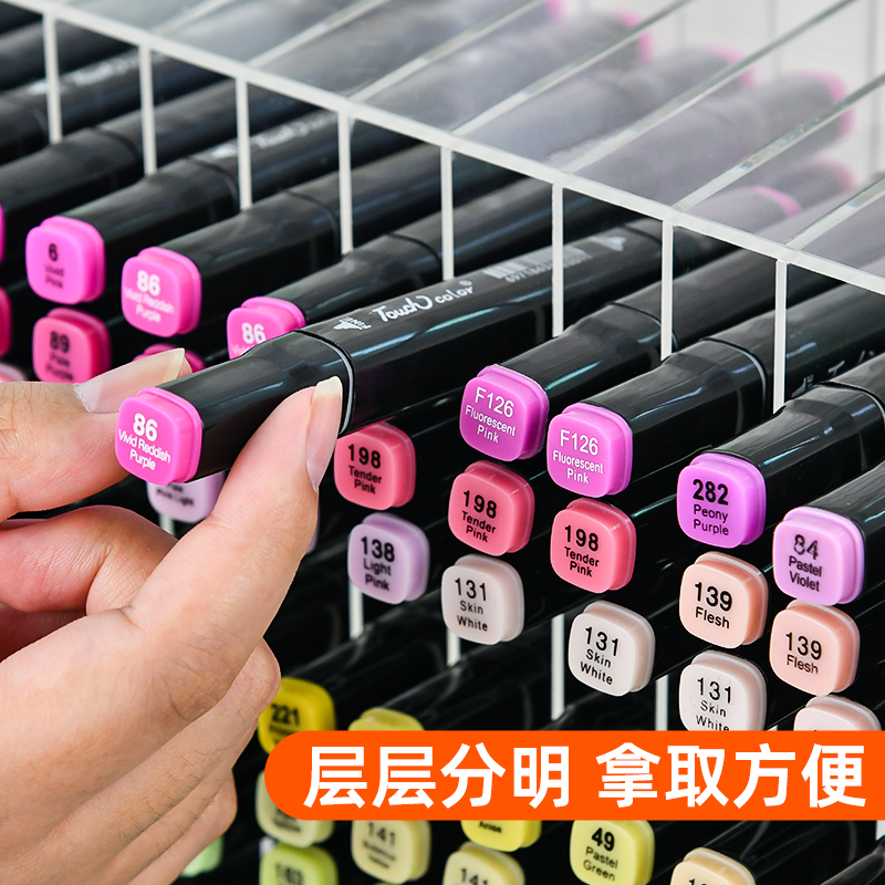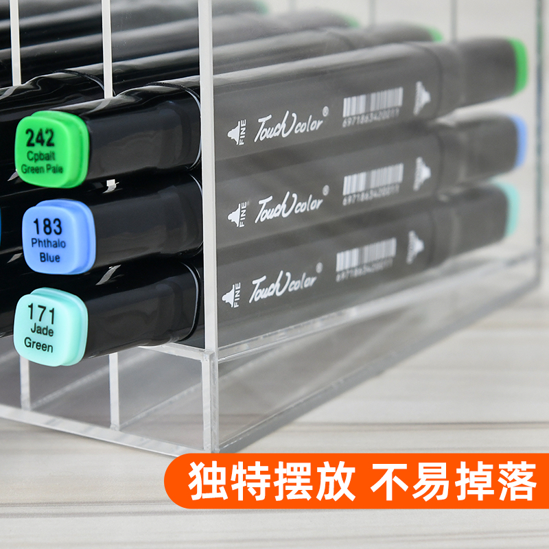 touch color丙烯马克笔收纳架斜插式笔架展示架透明画笔方格桌面盒美术笔收纳展示架子大容量加厚丙烯桌面架