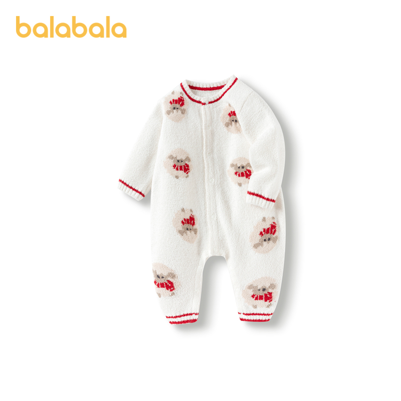 巴拉巴拉童装新生婴儿连体衣冬装宝宝加厚睡衣哈衣爬服半边绒洋气