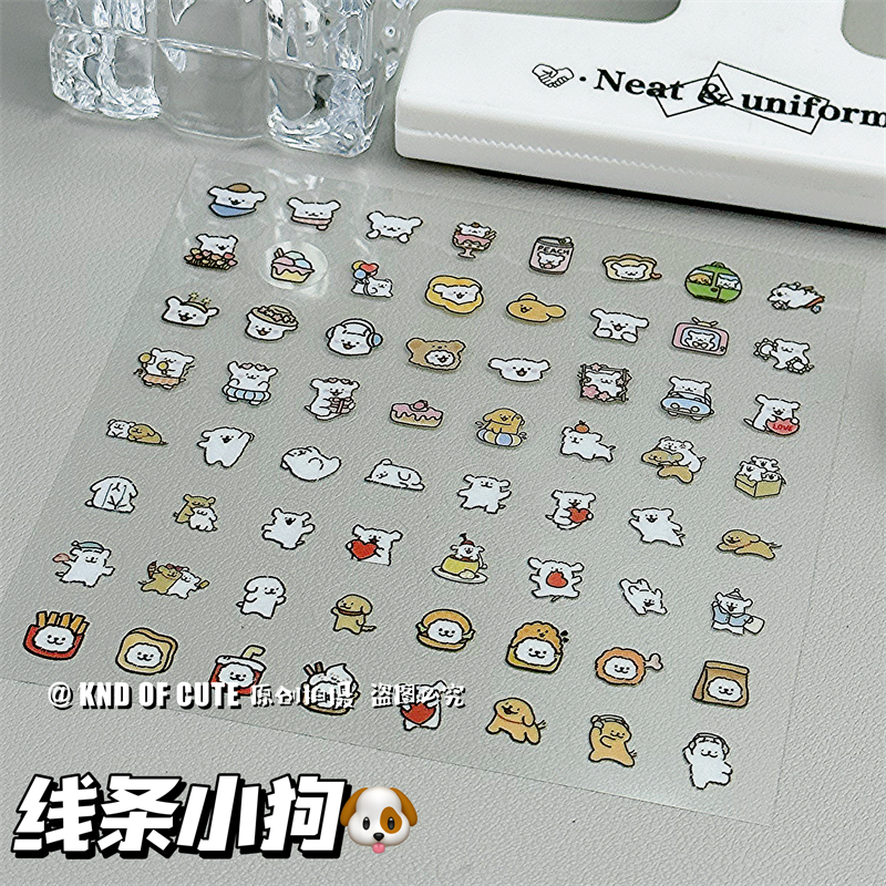 线条小狗ins高颜值透明贴纸学生手账diy专用装饰创意贴纸美甲贴纸