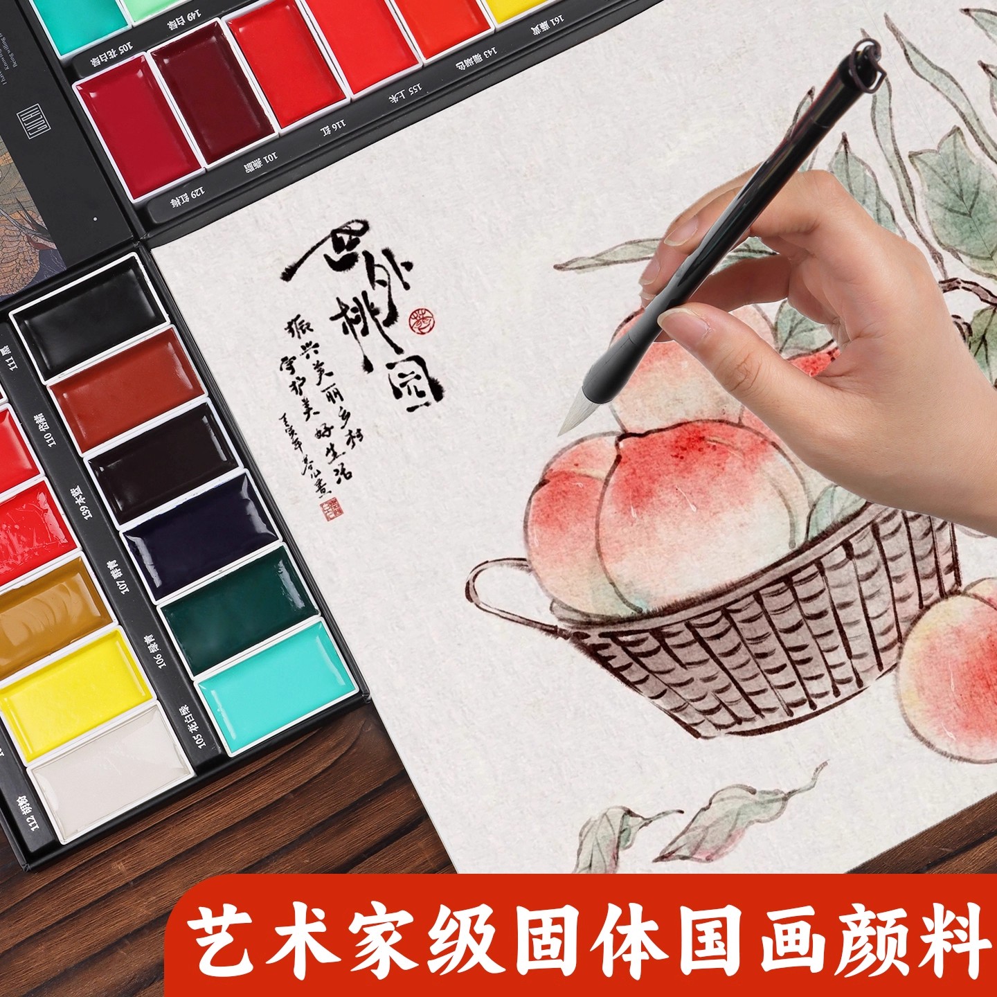 固体中国画颜料国画初学者套装小学生12色天然矿物颜料24色国画用品工具全套山水花鸟水墨画套装矿物质固体
