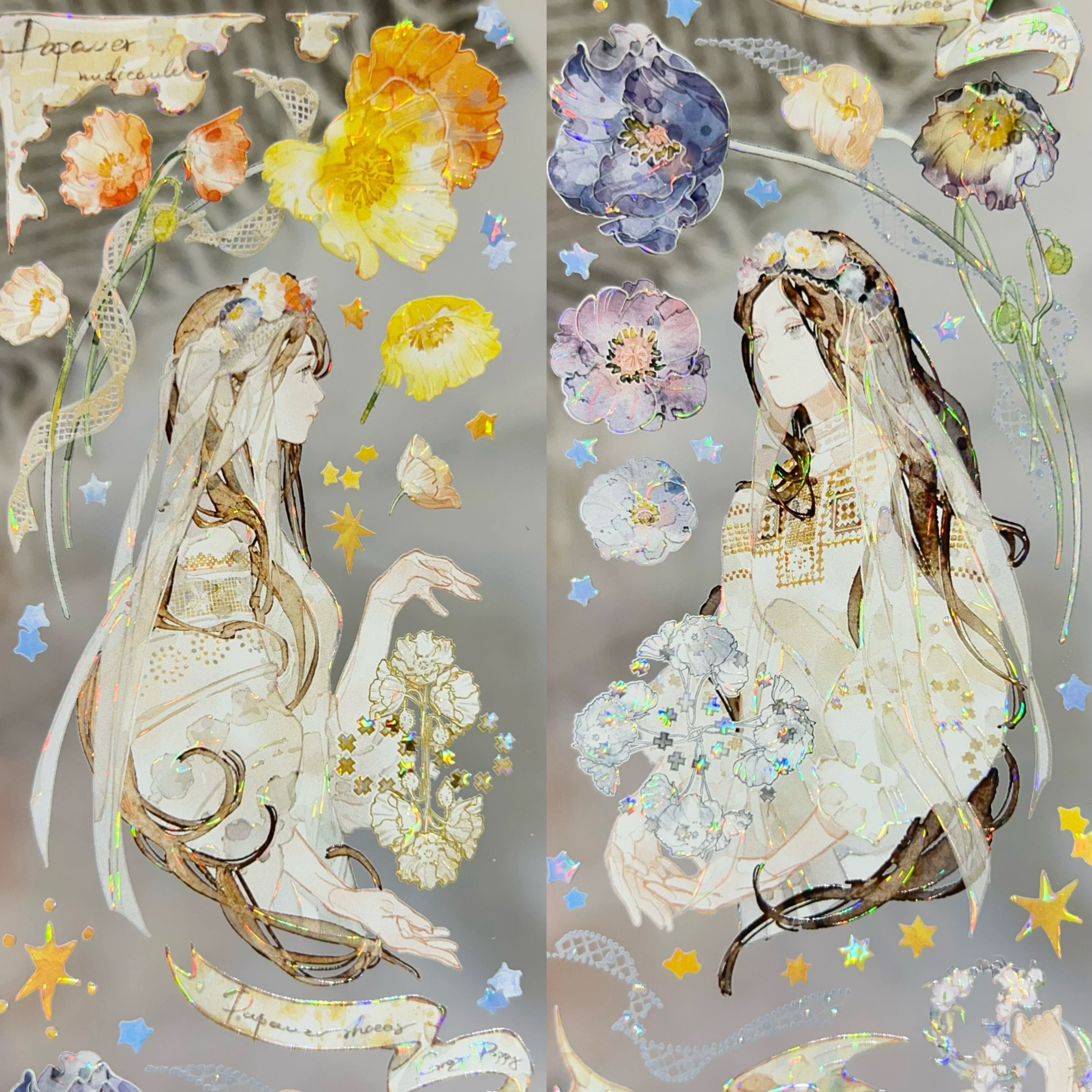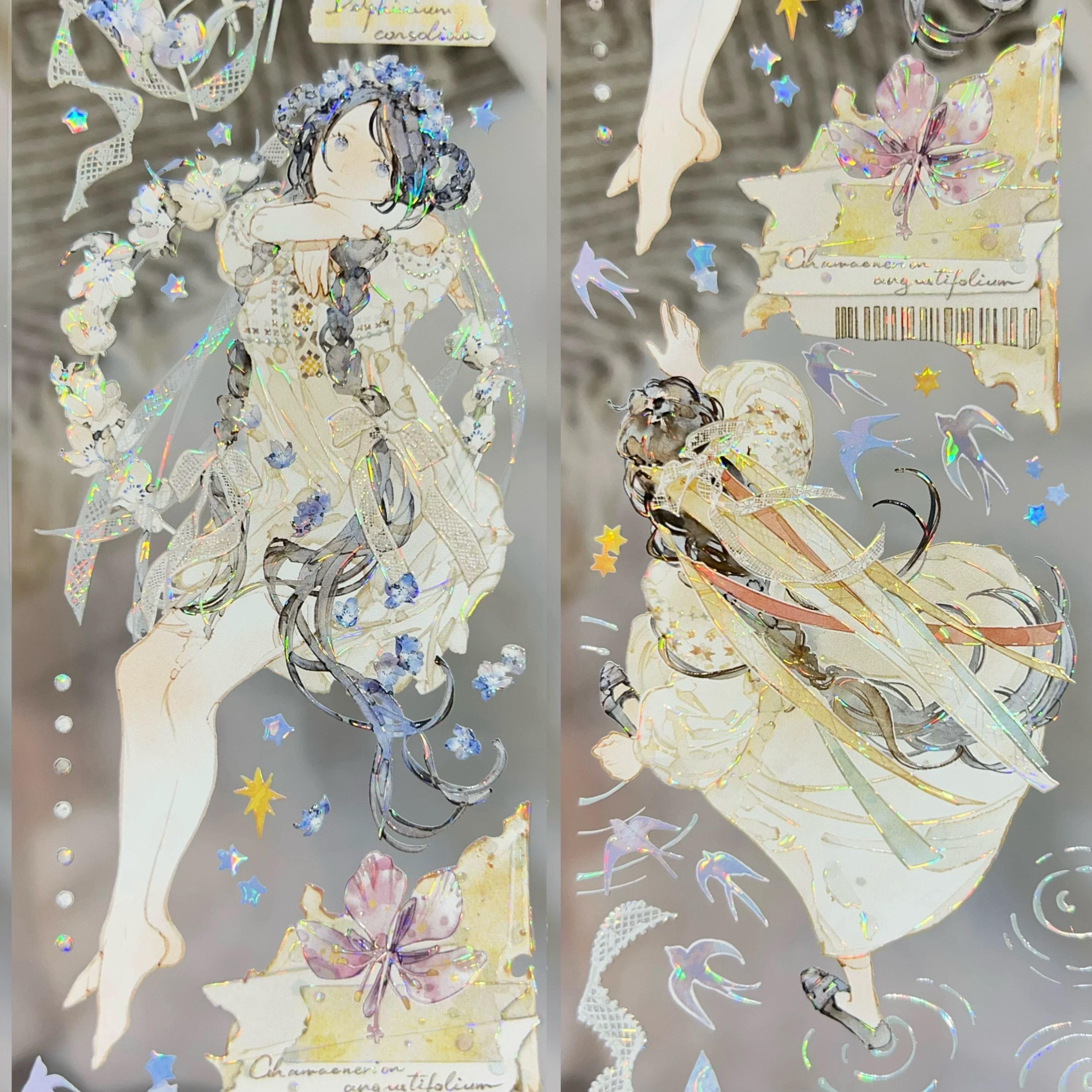 来自山野 冰川研究所清新唯美人物PET贝壳光胶带手帐咕卡流麻素材