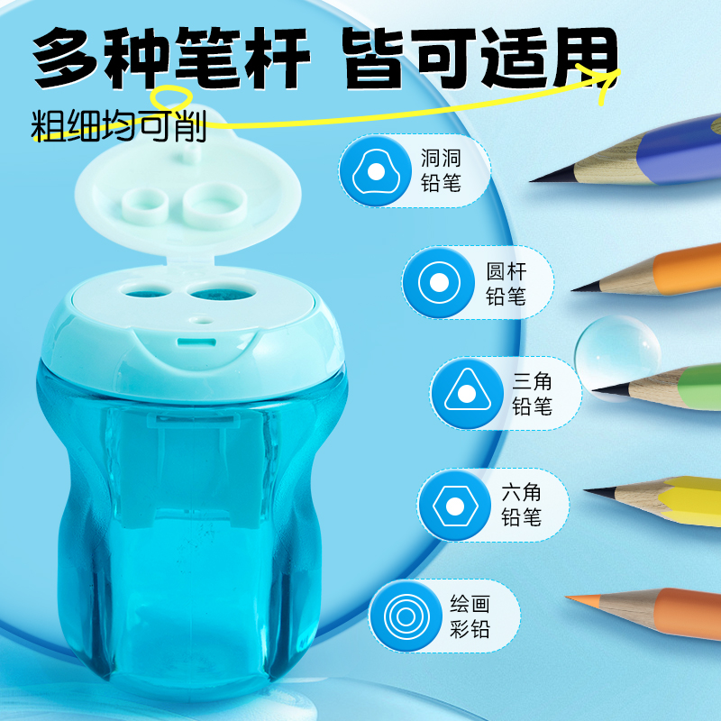 晨光多功能三孔大口径卷笔刀儿童转笔刀小学生专用削笔刀粗细都能削手动铅笔刀粗三角六角杆加粗洞洞铅削笔器
