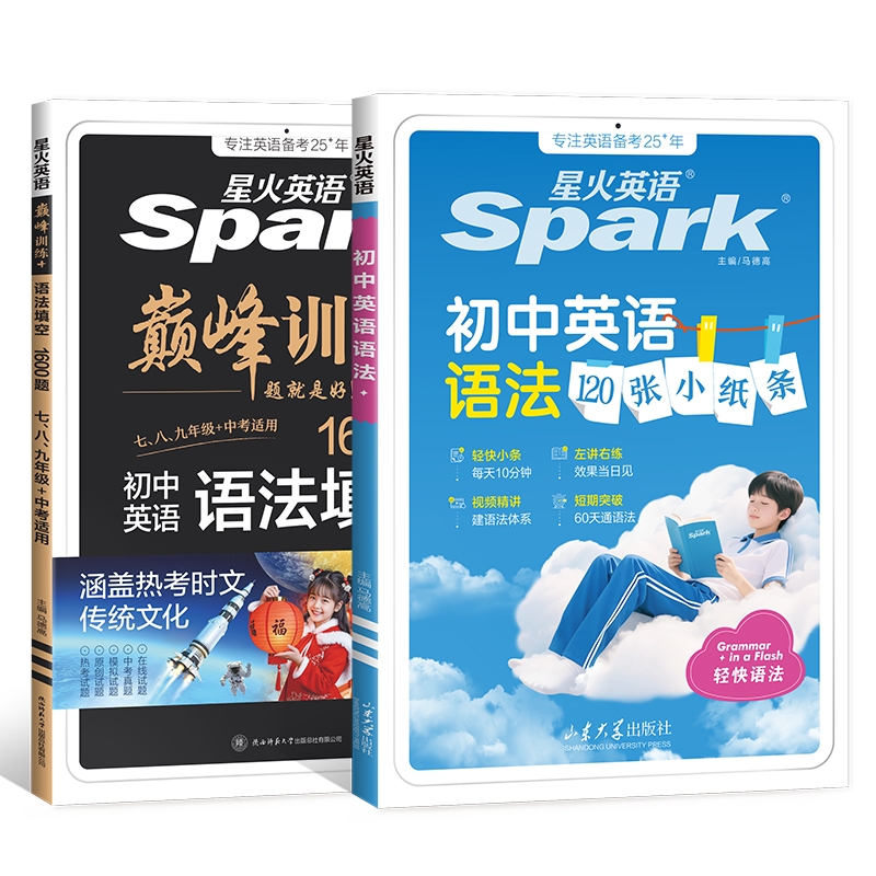 【旗舰店】星火英语初中英语语法小纸条+语法填空 初中英语语法书初一初二初三七八九年级通用中考英语复习资料教辅书