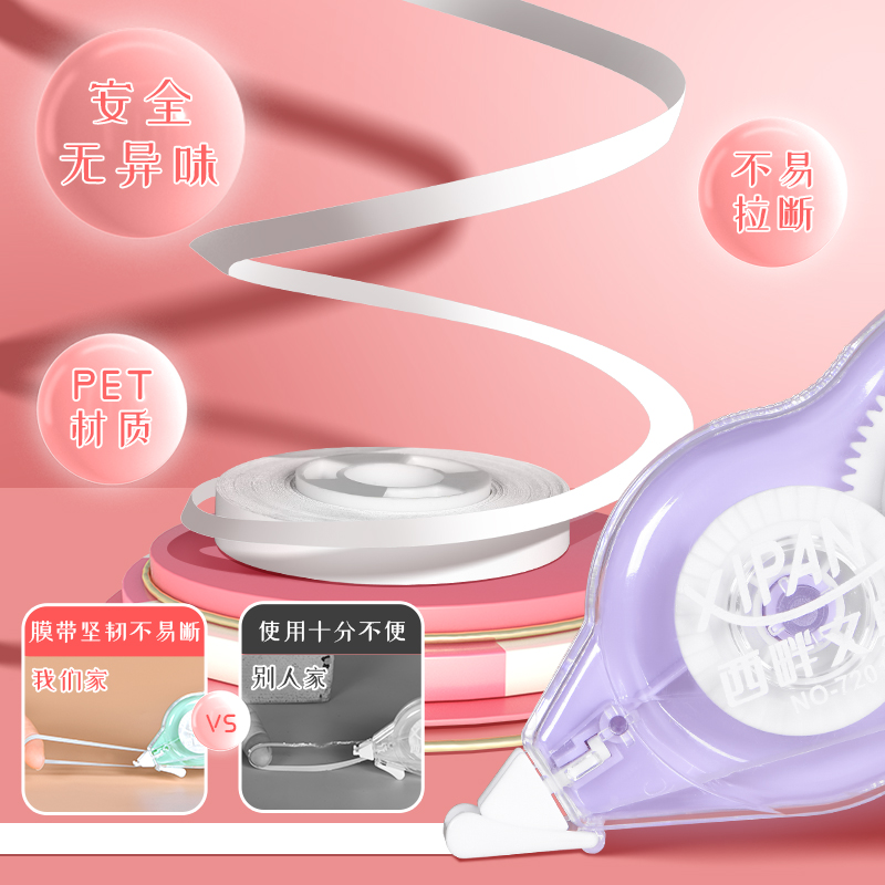 西畔马卡龙色系修正带小学生专用涂改带初中生高颜值女生大容量改正带改字休正纠正学生用可爱便携实惠装
