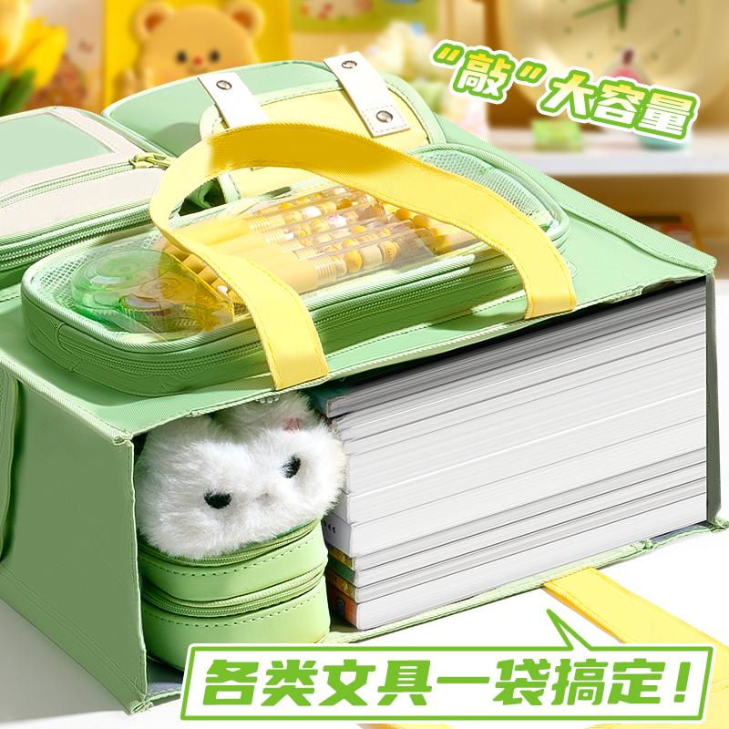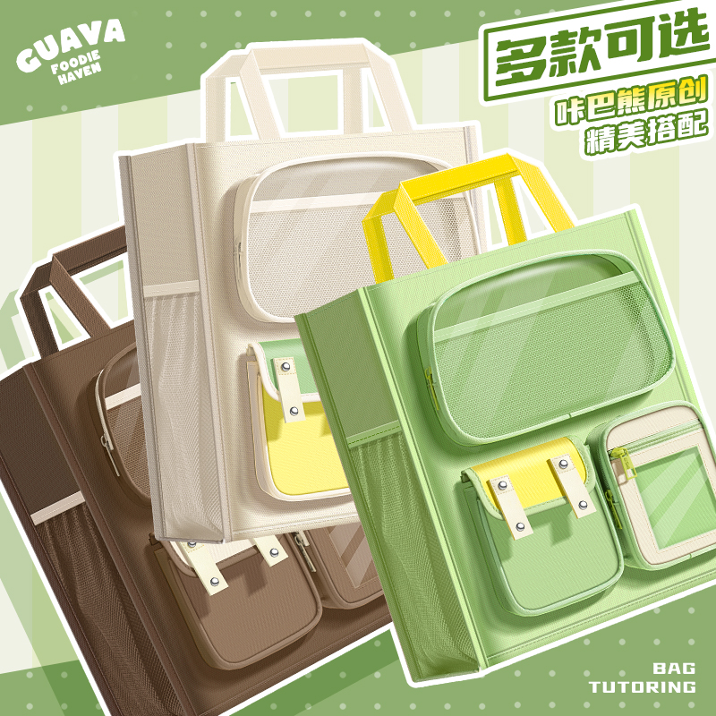 多功能痛包补习袋学生用大容量手提袋拎书袋二次元风小食量吧唧文具收纳包透明补课包书袋帆布包男女孩美术袋