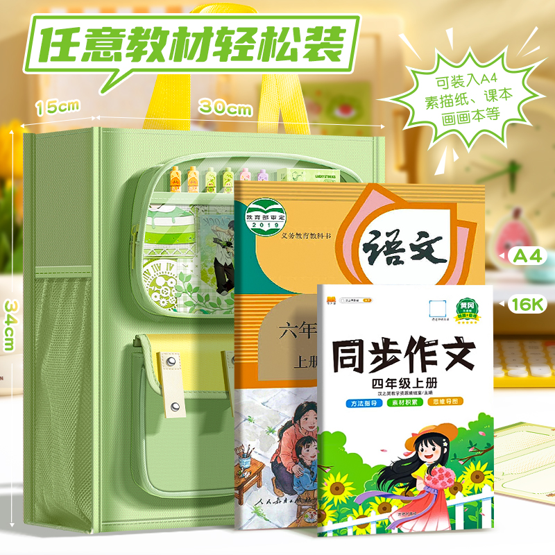 科目分类袋小学生学科袋手提拎书袋学生一年级拉链式试卷收纳袋分科整理文件袋学科课本学习资料作业开学必备