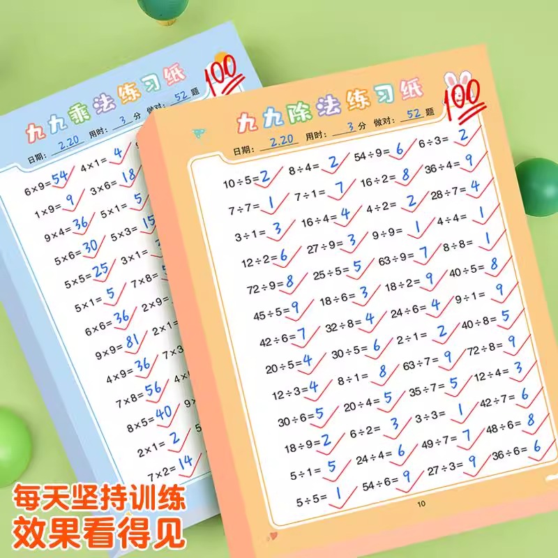 二年级乘除法练习题口算题卡99乘法除法算术题专项训练九九口诀表算数速算题小学生数学乘法除法计算题练习册