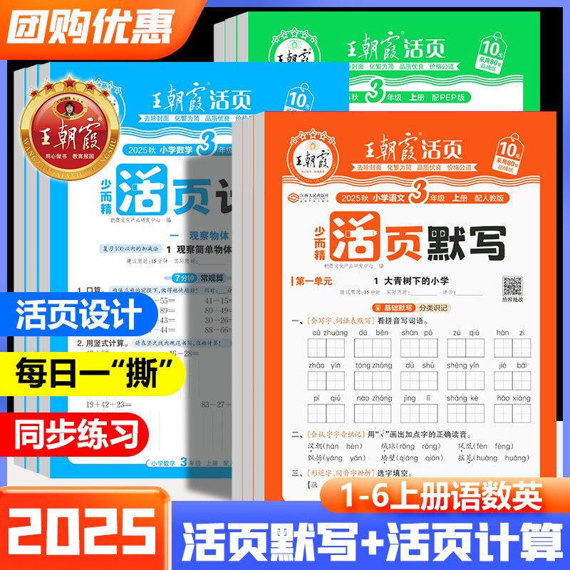 2025秋上册王朝霞活页默写能手同步练习册一二年级三四五六年级一课一练上计算能手数学语文试卷默写纸每日阅读天天练句式冀教版