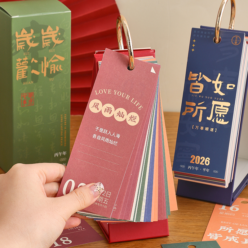 收藏欢喜2026年新款日历365天励志语录台历桌面摆件日历本高颜值翻页创意企业团购年历新年礼物火马年小日历