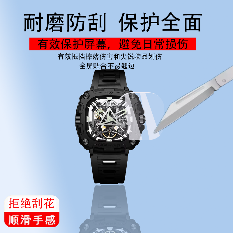 适用于玺佳机械表贴膜能量之眼男士手表保护膜CIGA Design镂空腕表屏幕非钢化膜防刮防爆