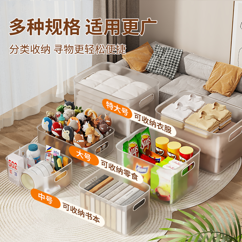 收纳箱透明家用玩具零食书本储物箱大容量长方形塑料收纳盒整理筐