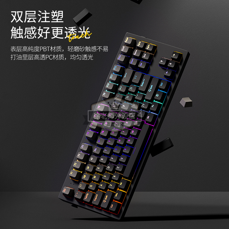 腹灵欧希德微尘正刻键帽渐变透光PBT材质原厂高度61/87/104/108键