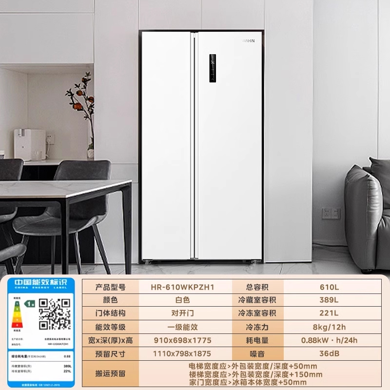 美的出品华凌610双开对开门大容量风冷无霜家用超薄嵌入一级冰箱