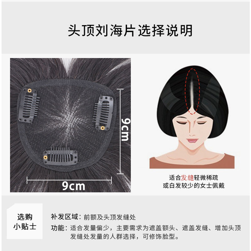 夏天轻薄前额补发片增发量遮白发头顶假发片短发真人发全手工钩织