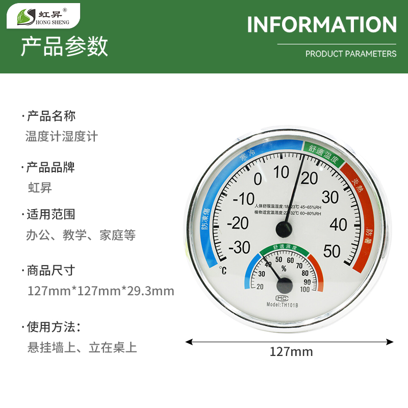 寒暑表指针式温度计干湿温度湿度计家用干湿球温湿度表高精度室内大棚实验室养殖专用