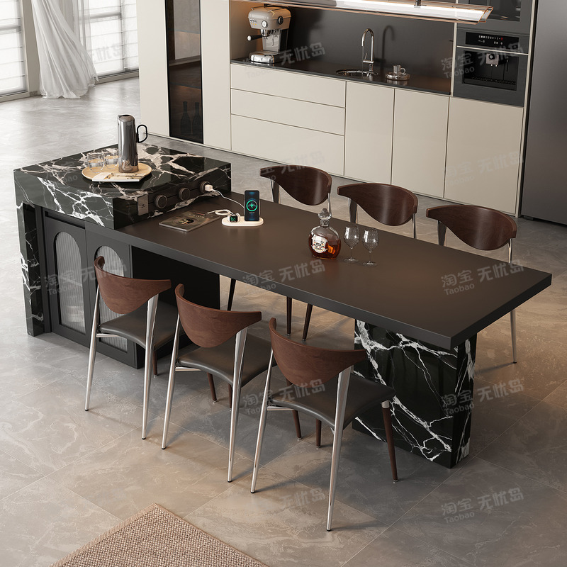 设计师款岛台餐桌一体可伸缩岩板高级中导台家用厨房轻奢高端倒台