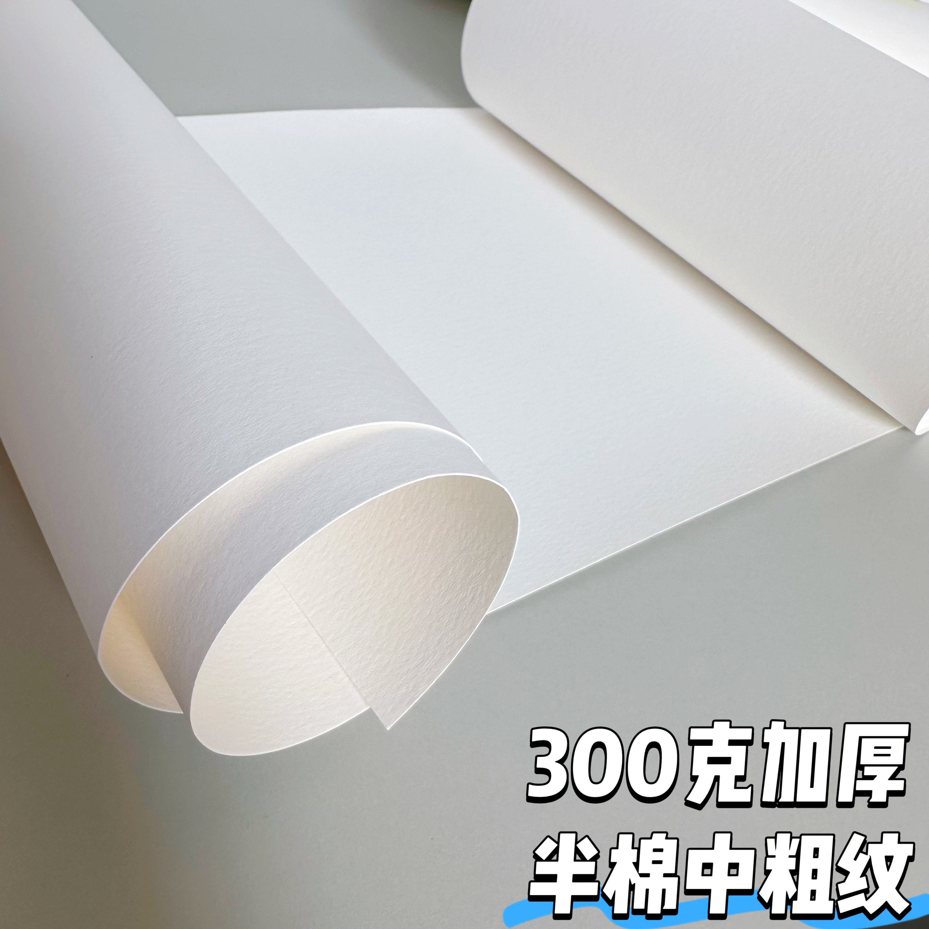 300g卷装半棉浆水彩纸可裁切16k8k4k超大卷装中粗纹10m加厚10米长学院级学生美术生专用水彩颜料画纸加厚微黄