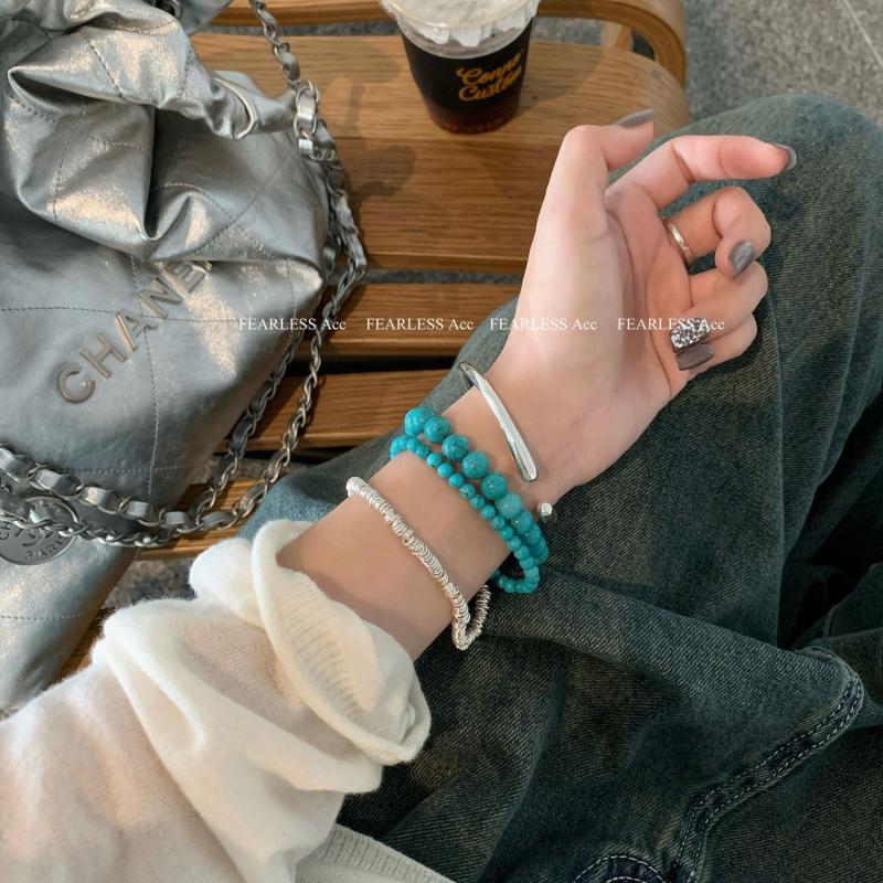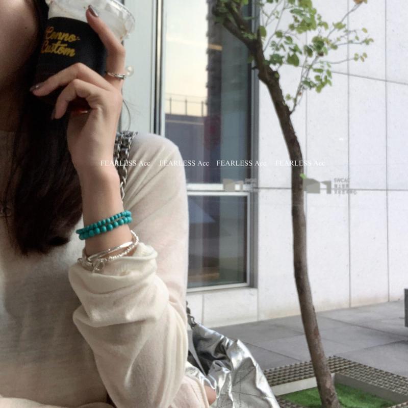 新款绿松石绿串珠手链小众设计气质叠戴天然石手串女手工朱砂原创